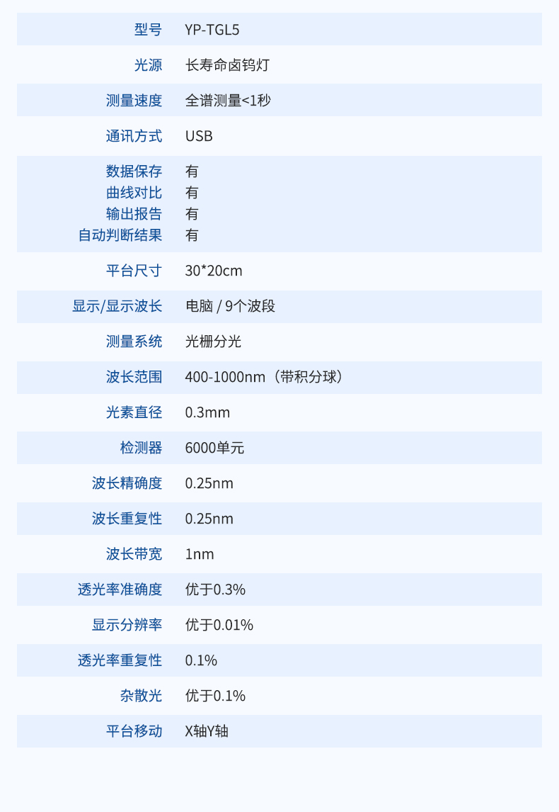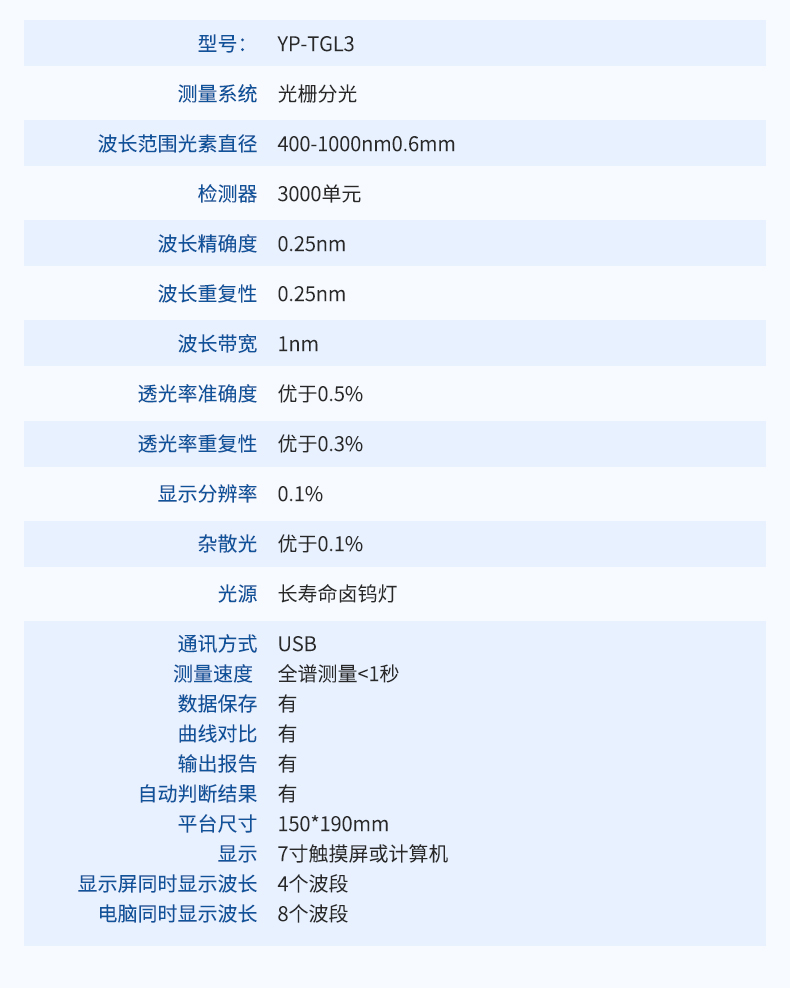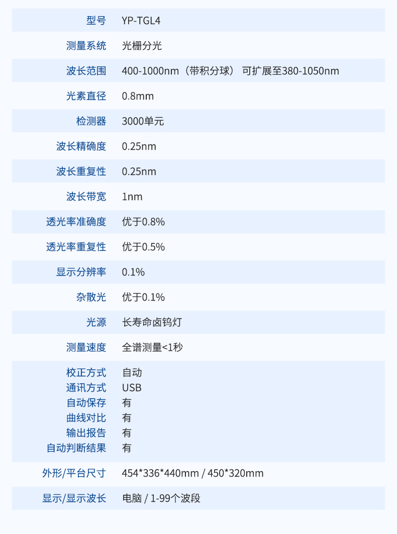 | 透過率分辨率 | 0.01% |