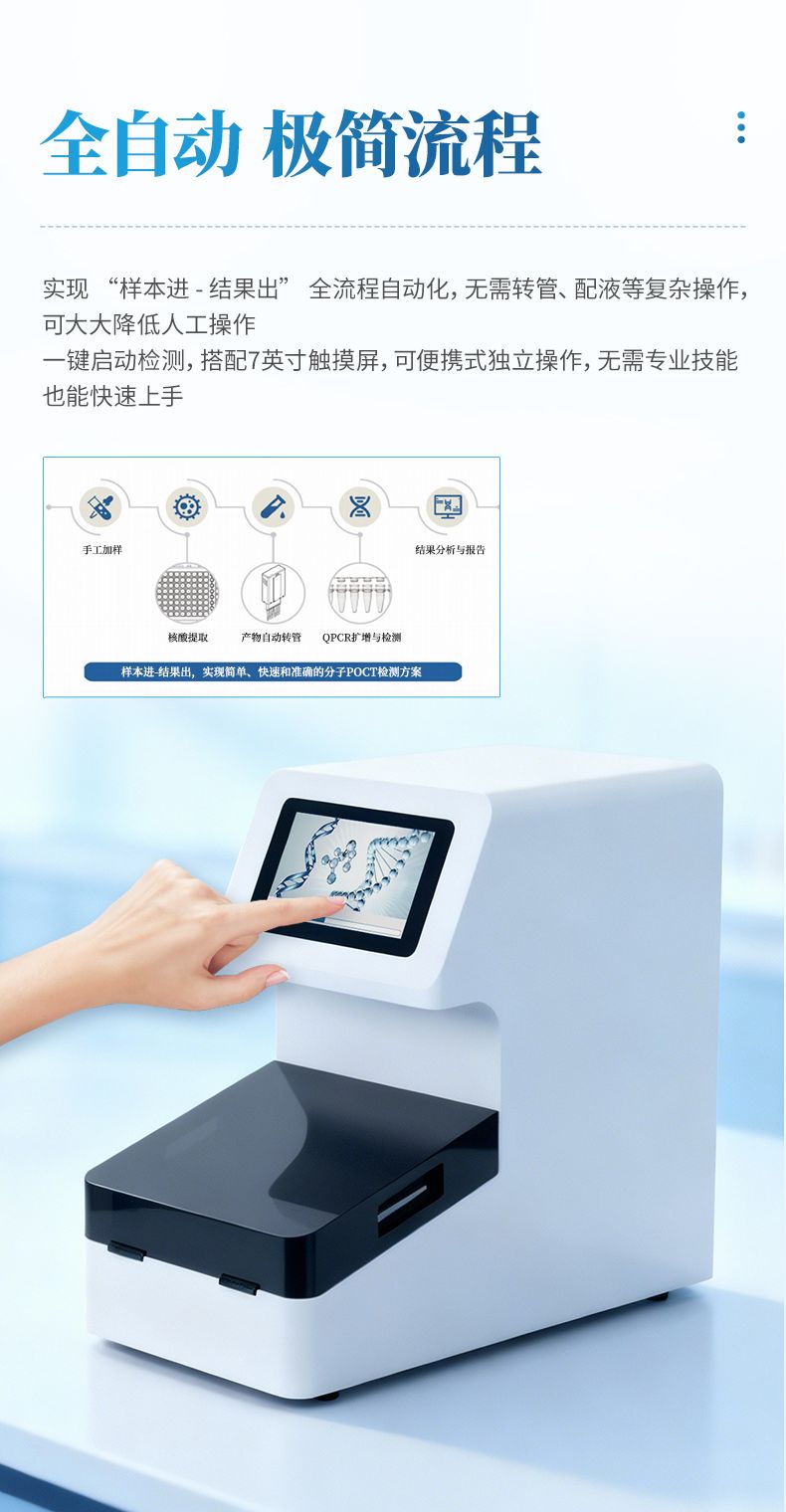 樣本進(jìn)、結(jié)果出,實(shí)現(xiàn)簡單、快速和準(zhǔn)確的分子POCT檢測方案