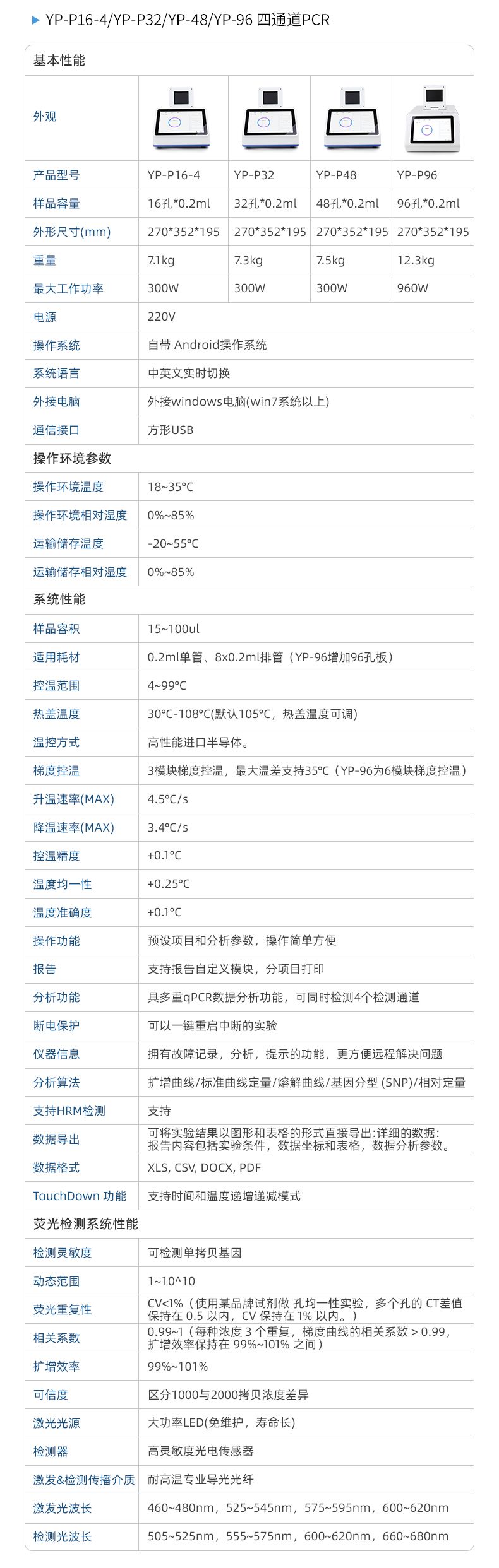 實時熒光定量PCR系統主要用于運行實時熒光定量PCR實驗,通過熒光激發和采集的方式,對實驗過程進行實時監控,將實驗過程數據繪制成熒光曲線,實時呈現于儀器顯示界面,并對實驗數據進行擬合和分析,最后可生成PDF格式的實驗報告。