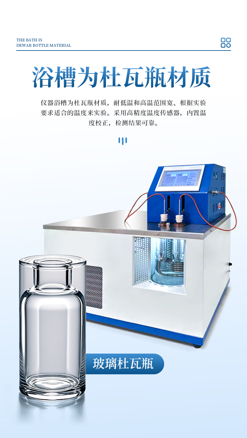 5、儀器浴槽為杜瓦瓶材質,耐低溫和高溫范圍寬、