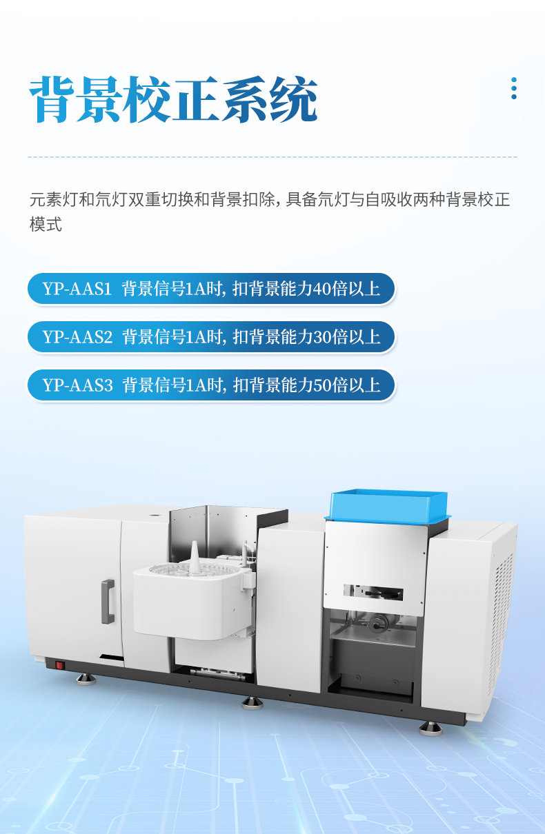具備氘燈與自吸收兩種背景校正模式,背景信號(hào) 1A 時(shí),扣背景能力 30 倍以上。