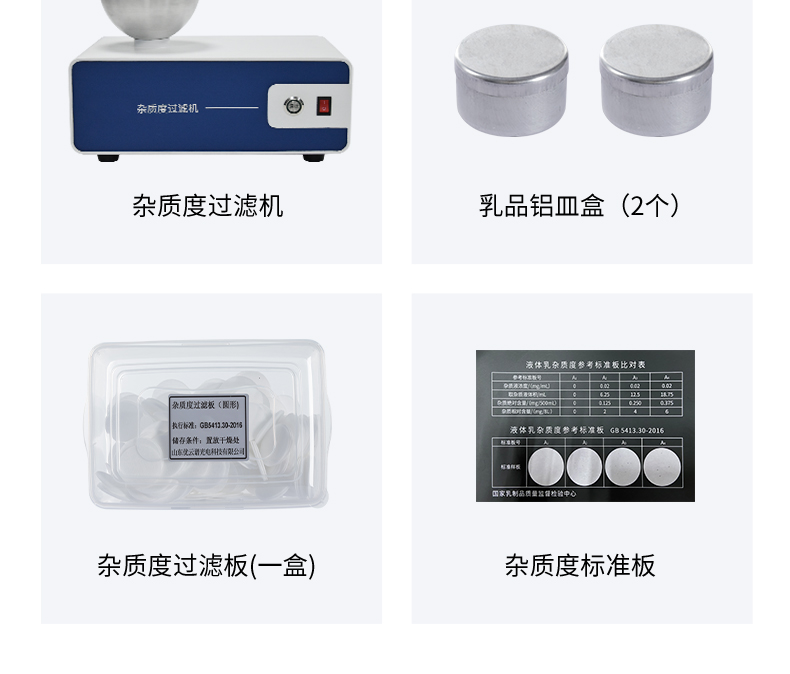 配置:主機一臺,乳品鋁皿盒二個,雜質度過濾板一盒,雜質度標準板一張,雜質度標準板使用說明一份,雜質度過濾機使用說明書一份,實驗規范一份,合格證一張)