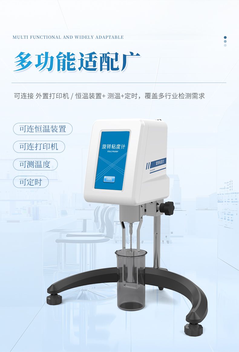 旋轉粘度計是一種用于測量液體粘度的精密儀器。它通過測量旋轉部件在液體中受到的阻力來確定液體的粘度。旋轉粘度計廣泛應用于化工、食品、醫藥、石油等行業,用于質量控制、研發和生產過程中的粘度測量。