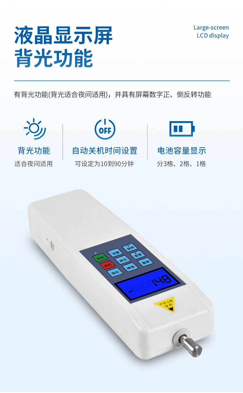 最大負(fù)荷:500N (其他量程可定制,N、Kg和ib三種單位可自動(dòng)轉(zhuǎn)換)