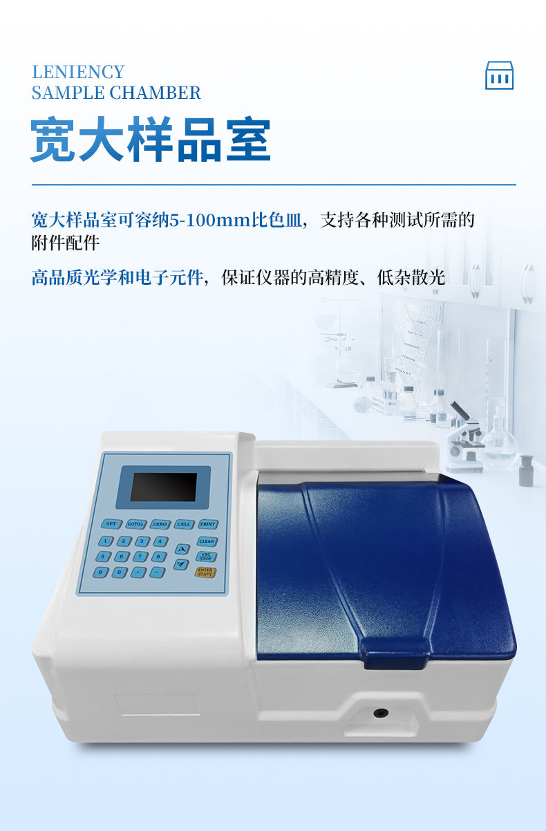 分光光度計具有定量測量、波長掃描、時間掃描、多波長測試、DNA蛋白質測試等高階功能,具有高精度、高分辨率、低噪聲、低雜散光的特點,特別適用于科學研究、醫藥檢驗、生命科學、環境監測、冶金化工等領域。
